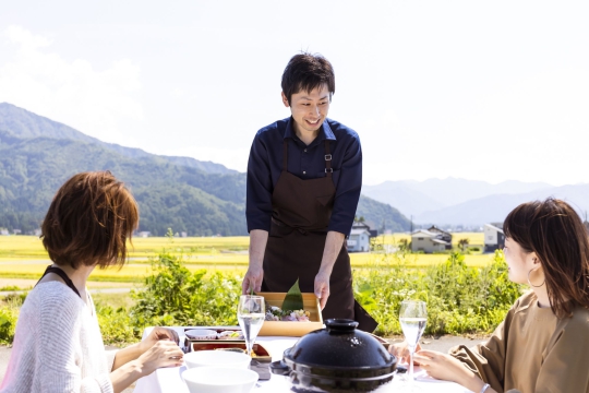 田んぼや雪景色の中で、雪国のごちそうを味わうのも一つ。