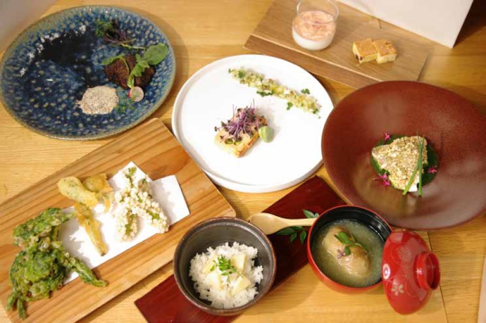 一年の半分近くも雪に閉ざされる越後湯沢。長い冬を越すための知恵は、「食」にも強く蓄えられ、今も息づいています。土の恵みである野菜類を、乾燥あるいは塩漬けにして保存する知恵。>雪の中で醸した酒、味噌、醤油などの発酵食品。一皿を通して、雪国ならでは暮らしや知恵に触れてみてください。