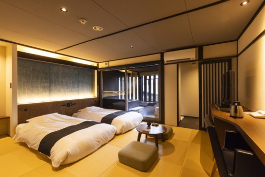 露天風呂のある部屋、囲炉裏のある部屋、籠るのにぴったりの部屋、