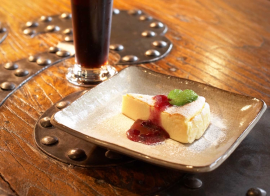 温泉水を使って水出しした「温泉珈琲」にオリジナルのスイーツはいかがですか。
